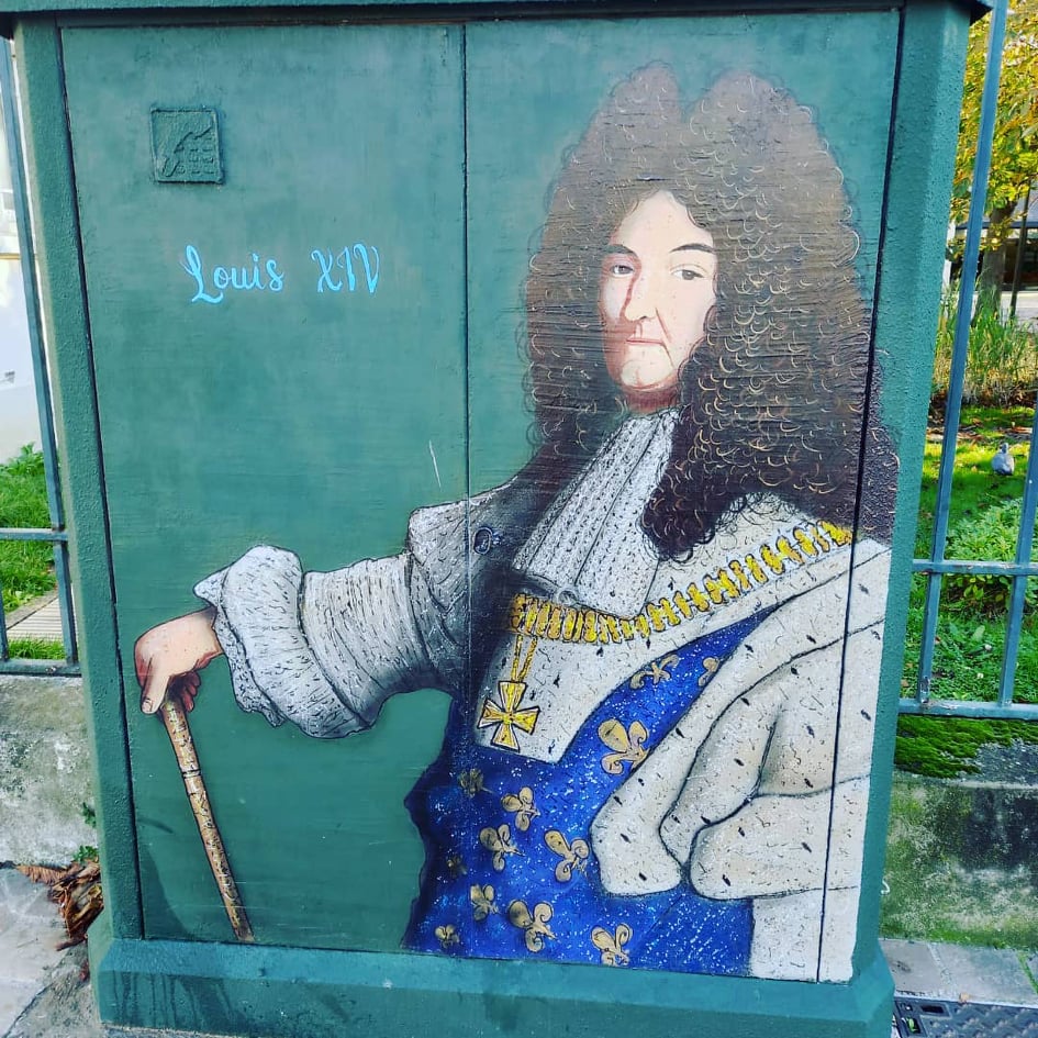 J’ai eu un coup de cœur pour ce pochoir de C215, reproduction d’un tableau connu de tous dans les manuels d’Histoire. Je trouve que Léonardo Di Caprio dans L’Homme au masque de fer, production hollywoodienne inoubliable des années 1990, joue très bien le monarque narcissique et autoritaire.
