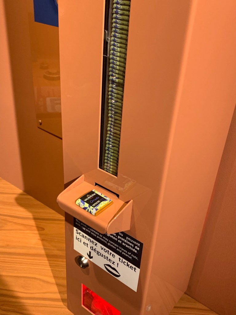Je reconnais que nous étions plus intéressés par les distributeurs de mini chocolats en dégustation libre régulée par le code barres de notre ticket d’entrée que par les panneaux explicatifs.
