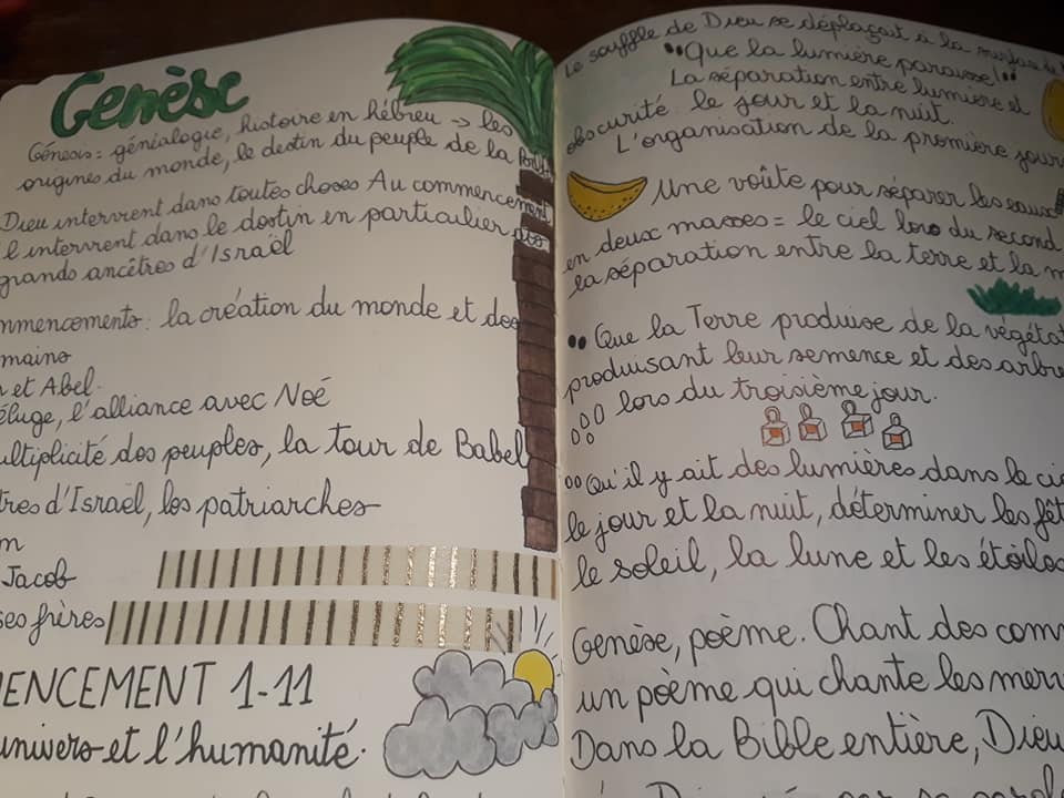 Pendant le premier confinement presque monacal de 2020, je me suis lancée dans le challenge de lire l’Ancien testament grâce à des petits dessins dans un carnet Moleskine. J’en ai même fait un atelier qui s’appelle #Dessiner la Bible.